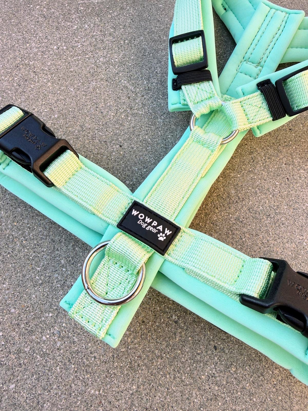 FLOW setzt auf eine schlanke Konstruktion ohne zusätzliche Bauteile. Die Kunststoffverschlüsse sind leicht, alltagstauglich und ermöglichen ein schnelles An- und Ablegen. Durch die farbliche Abstimmung fügt sich das Geschirr harmonisch in bestehende WOWPAW-Sets aus Halsband und Leine ein.