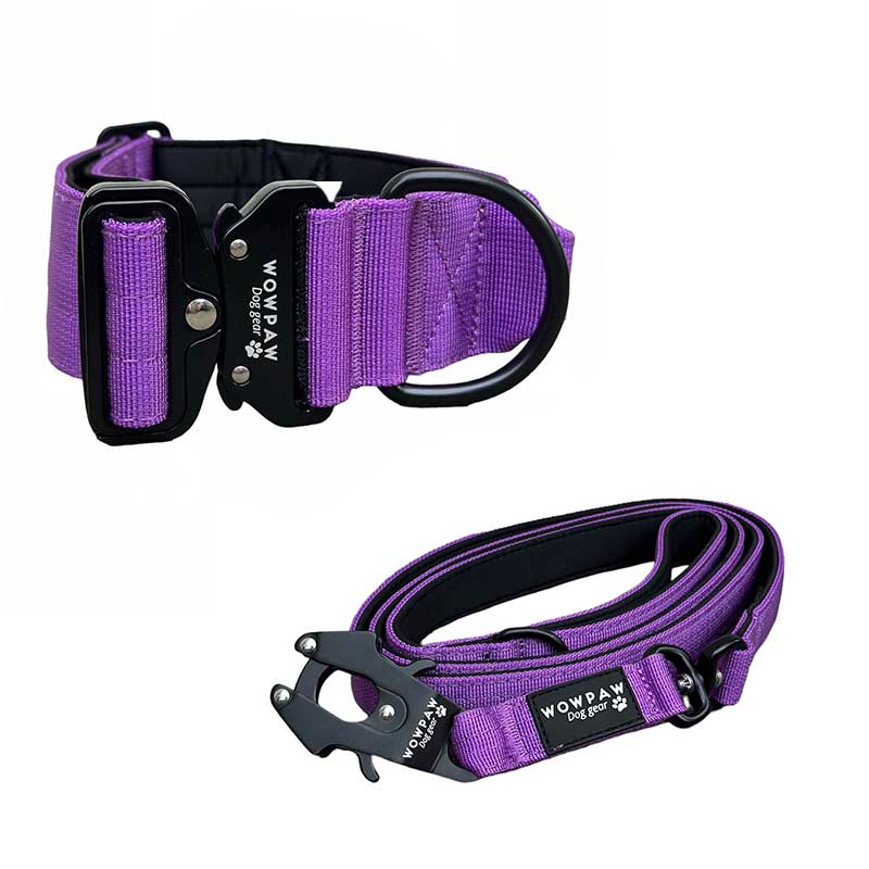 Set di collare tattico per cani viola scuro taglia M e guinzaglio tattico per cani viola scuro