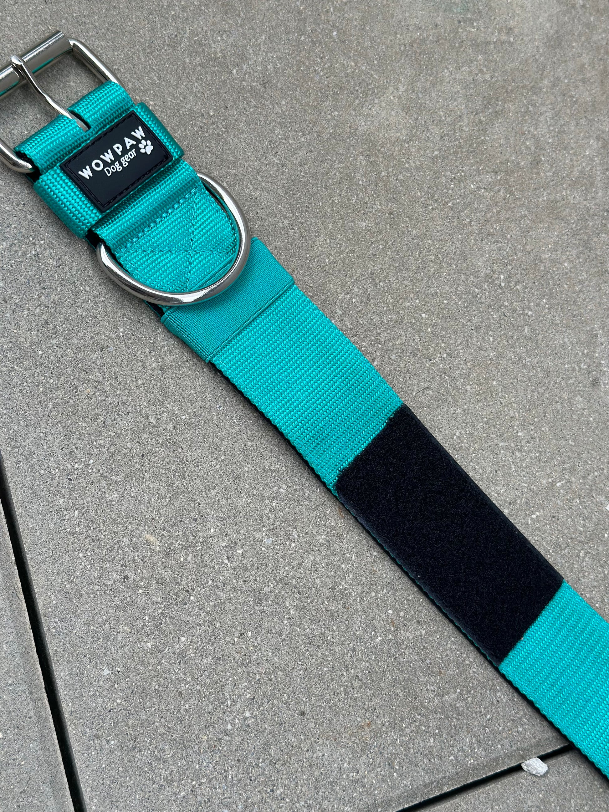 Wysokiej jakości podstawowa obroża dla psa z naszywką w kolorze turkusowym, rozmiar L
